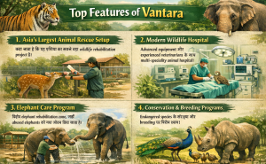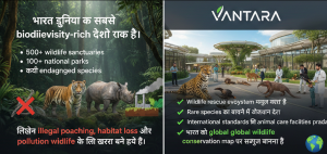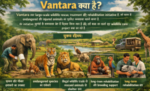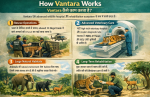 Vantara एक large-scale wildlife rescue, treatment और rehabilitation initiative है, जो भारत में endangered और injured animals को सुरक्षित वातावरण प्रदान करता है।